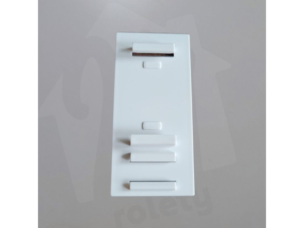 Co je horní úchyt (profil) okenního rámu pro neotvíratelná okna rolet Den a Noc Pokud máte okna, která nemají samostatné otevírání a jsou namontávány do zdi napevno, použijte místo stadardního provedení horního úchytu tento úchyt, který je vyroben přímo na tyto účely. Lepí se přímo na horní čelo rámu pomocí oboustranných samolepek. Horní úchyt okenního rámu rolet Den a Noc je praktické příslušenství pro rychlou a snadnou instalaci rolety bez vrtání do okenního rámu. Horní úchyt okenního rámu je vhodný pro různé typy a systémy rolet, jako jsou textilní nebo látkové rolety, dvojité známé též pod hojně používaným označením rolety Den a Noc. Horní úchyt okenního rámu rolet Den a Noc je dostupný v bílé a tmavě hnědé barvě a velikostech podle typu a designu rolety. Na jednu roletu potřebujete 2ks těchto úchytů.