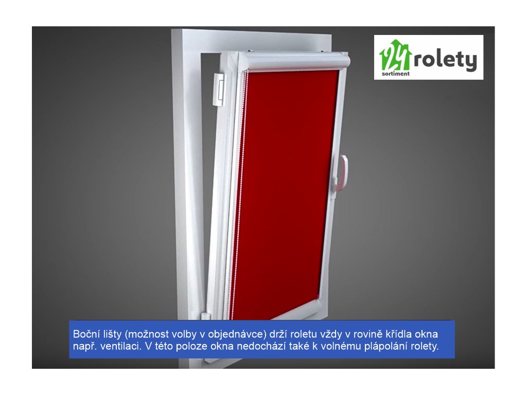 K ROLETÁM V KAZETE si můžete dokoupit vodící lišty. Ty udržují roletu přímo na okně i když jsou okna otevřená (při ventilaci). Tento způsob řešení dodává oknu a roletě velice elegantní a čistý vzhled.