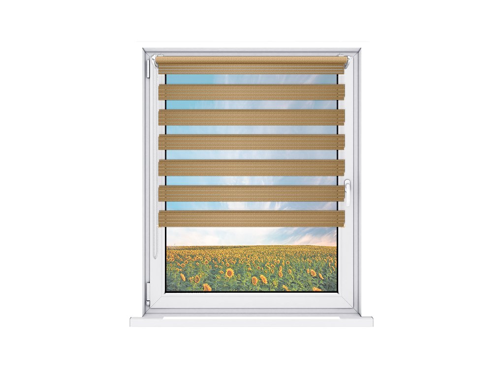 Systém rolet DEN A NOC je velice moderním způsobem jak regulovat stínění ve dne a zabezbečit pocit soukromí v noci. Princip tohoto systému je založen na dvou vrstvách látky kde se střídají průhledné a neprůhledné vodorovné motivy či pruhy. Navíjením jedné vrstvy látky dochází k regulaci průniku světla. Řetízkovým ovládáním si můžete navolit pruhy látky tak, aby jste v interiéru vytvořili světlo nebo tmu. Roletu můžete zastavit v libovolné výšce.