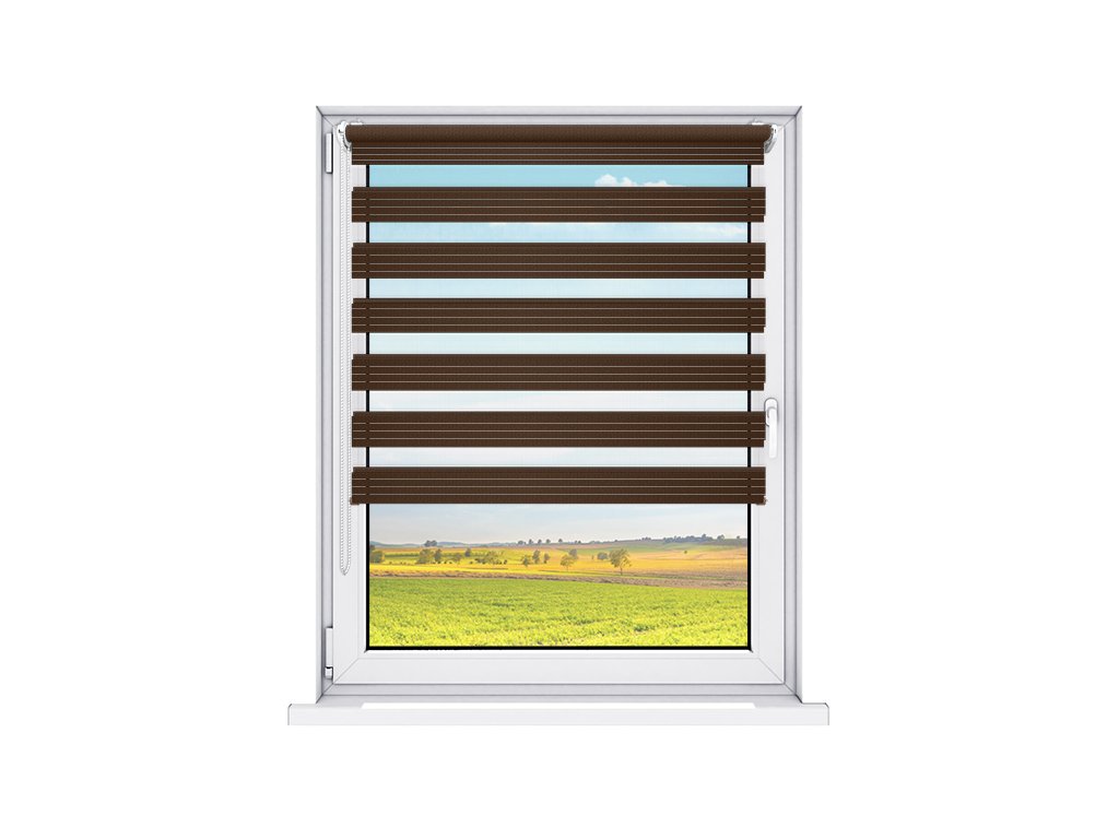 Systém rolet DEN A NOC je velice moderním způsobem jak regulovat stínění ve dne a zabezbečit pocit soukromí v noci. Princip tohoto systému je založen na dvou vrstvách látky kde se střídají průhledné a neprůhledné vodorovné motivy či pruhy. Navíjením jedné vrstvy látky dochází k regulaci průniku světla. Řetízkovým ovládáním si můžete navolit pruhy látky tak, aby jste v interiéru vytvořili světlo nebo tmu. Roletu můžete zastavit v libovolné výšce.