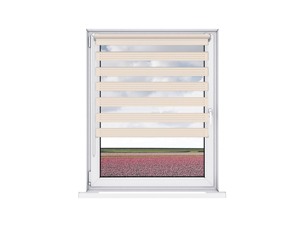 Systém rolet DEN A NOC je velice moderním způsobem jak regulovat stínění ve dne a zabezbečit pocit soukromí v noci. Princip tohoto systému je založen na dvou vrstvách látky kde se střídají průhledné a neprůhledné vodorovné motivy či pruhy. Navíjením jedné vrstvy látky dochází k regulaci průniku světla. Řetízkovým ovládáním si můžete navolit pruhy látky tak, aby jste v interiéru vytvořili světlo nebo tmu. Roletu můžete zastavit v libovolné výšce.