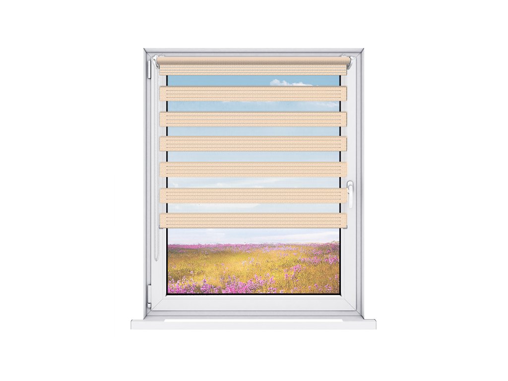 Systém rolet DEN A NOC je velice moderním způsobem jak regulovat stínění ve dne a zabezbečit pocit soukromí v noci. Princip tohoto systému je založen na dvou vrstvách látky kde se střídají průhledné a neprůhledné vodorovné motivy či pruhy. Navíjením jedné vrstvy látky dochází k regulaci průniku světla. Řetízkovým ovládáním si můžete navolit pruhy látky tak, aby jste v interiéru vytvořili světlo nebo tmu. Roletu můžete zastavit v libovolné výšce.