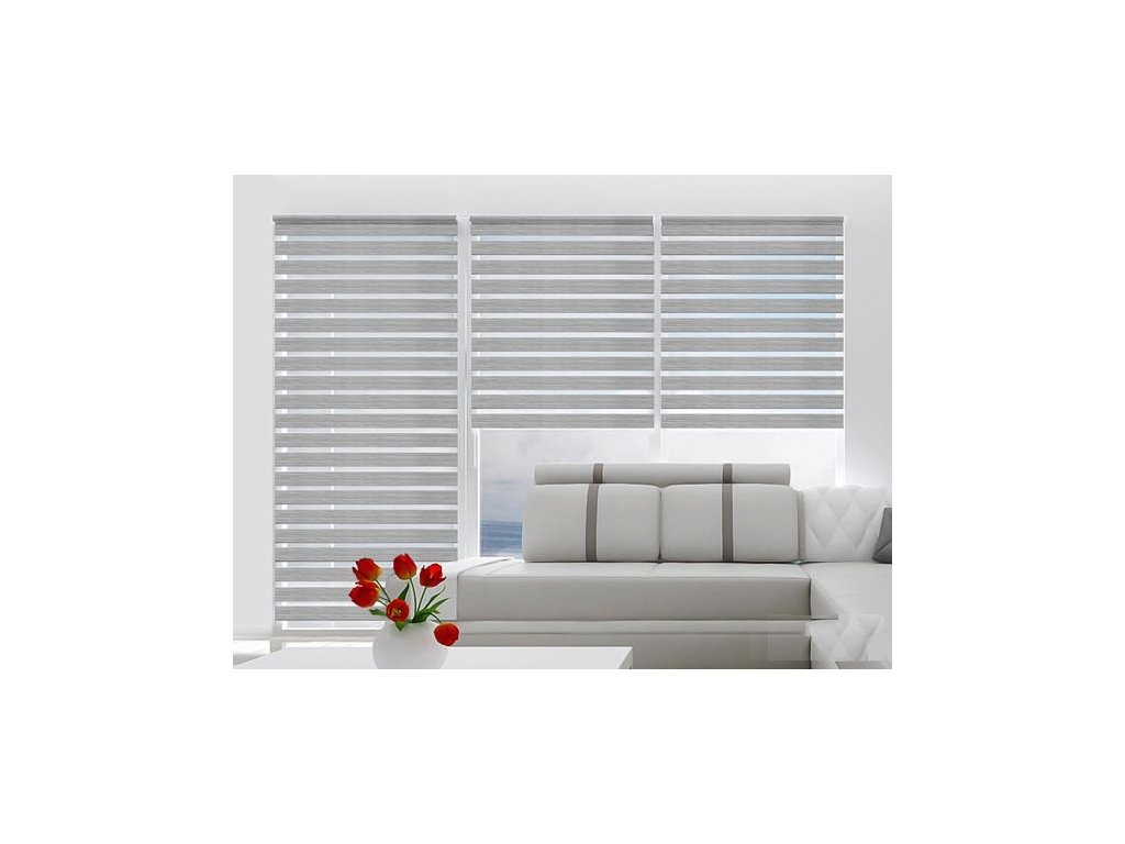 Systém rolet DEN A NOC je velice moderním způsobem jak regulovat stínění ve dne a zabezbečit pocit soukromí v noci. Princip tohoto systému je založen na dvou vrstvách látky kde se střídají průhledné a neprůhledné vodorovné motivy či pruhy. Navíjením jedné vrstvy látky dochází k regulaci průniku světla. Řetízkovým ovládáním si můžete navolit pruhy látky tak, aby jste v interiéru vytvořili světlo nebo tmu. Roletu můžete zastavit v libovolné výšce.