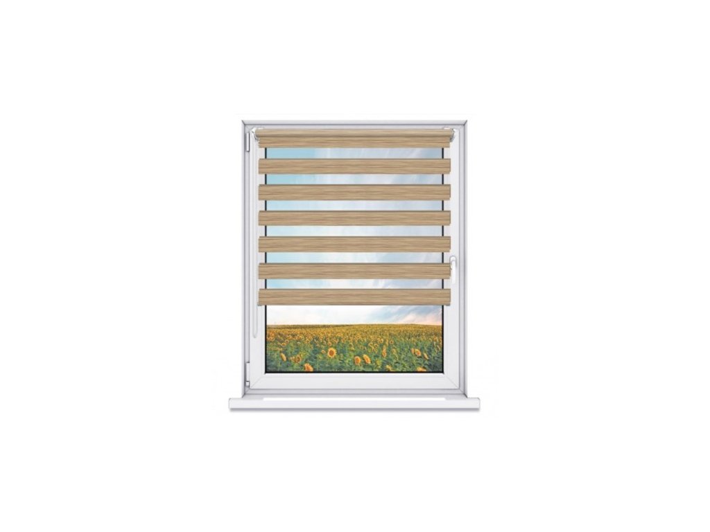 Systém rolet DEN A NOC je velice moderním způsobem jak regulovat stínění ve dne a zabezbečit pocit soukromí v noci. Princip tohoto systému je založen na dvou vrstvách látky kde se střídají průhledné a neprůhledné vodorovné motivy či pruhy. Navíjením jedné vrstvy látky dochází k regulaci průniku světla. Řetízkovým ovládáním si můžete navolit pruhy látky tak, aby jste v interiéru vytvořili světlo nebo tmu. Roletu můžete zastavit v libovolné výšce.