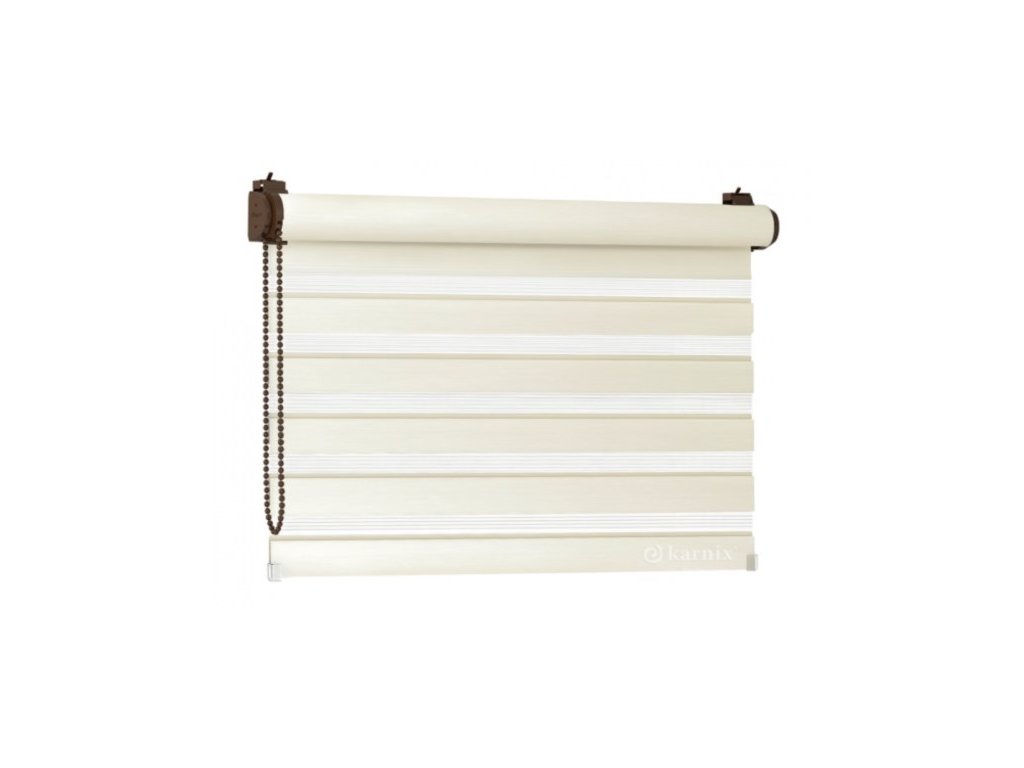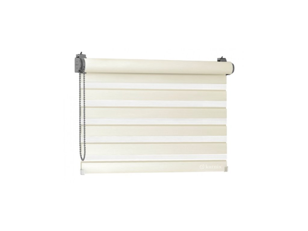 Systém rolet DEN A NOC je velice moderním způsobem jak regulovat stínění ve dne a zabezbečit pocit soukromí v noci. Princip tohoto systému je založen na dvou vrstvách látky kde se střídají průhledné a neprůhledné vodorovné motivy či pruhy. Navíjením jedné vrstvy látky dochází k regulaci průniku světla. Řetízkovým ovládáním si můžete navolit pruhy látky tak, aby jste v interiéru vytvořili světlo nebo tmu. Roletu můžete zastavit v libovolné výšce.