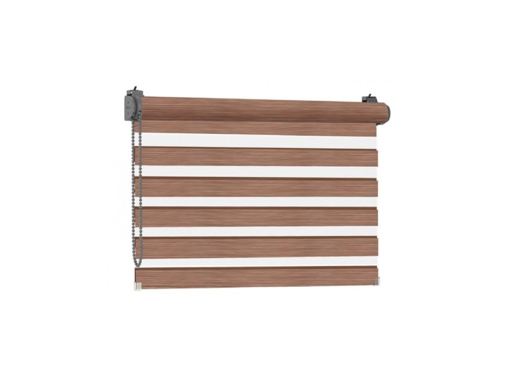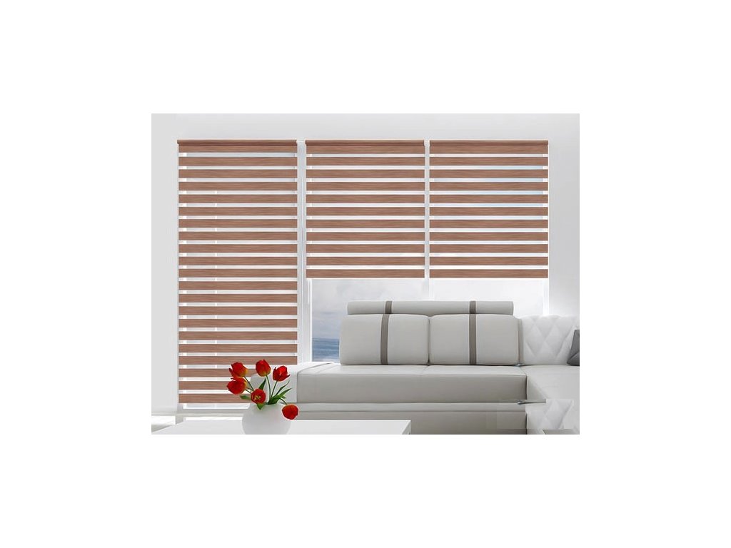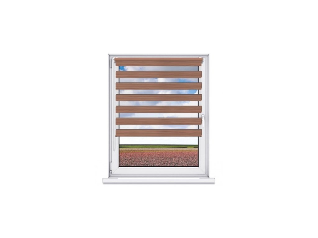 Systém rolet DEN A NOC je velice moderním způsobem jak regulovat stínění ve dne a zabezbečit pocit soukromí v noci. Princip tohoto systému je založen na dvou vrstvách látky kde se střídají průhledné a neprůhledné vodorovné motivy či pruhy. Navíjením jedné vrstvy látky dochází k regulaci průniku světla. Řetízkovým ovládáním si můžete navolit pruhy látky tak, aby jste v interiéru vytvořili světlo nebo tmu. Roletu můžete zastavit v libovolné výšce.