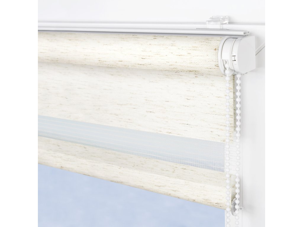 Roleta Den a noc SMILE v jemném marcipánovém odstínu s hladkou látkou. Zatemnění 50–70 %, montáž bez vrtání i na zeď či strop, ovládání oboustranné.