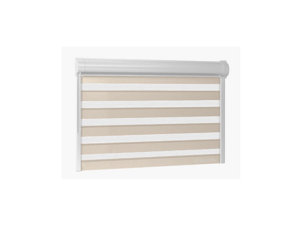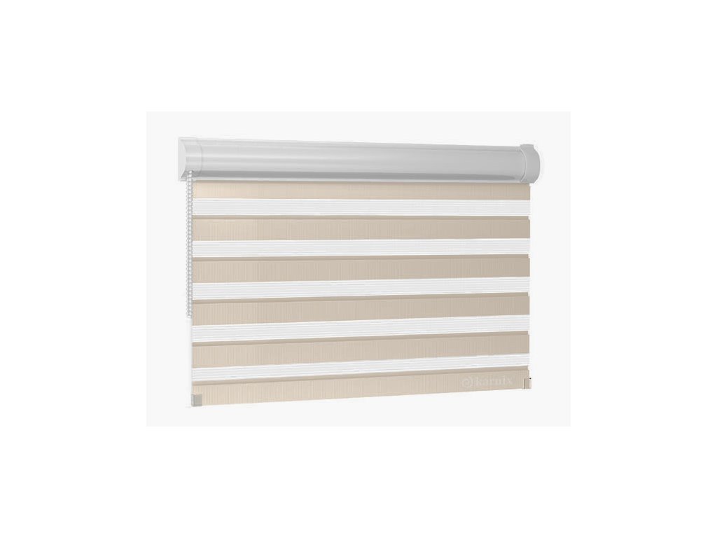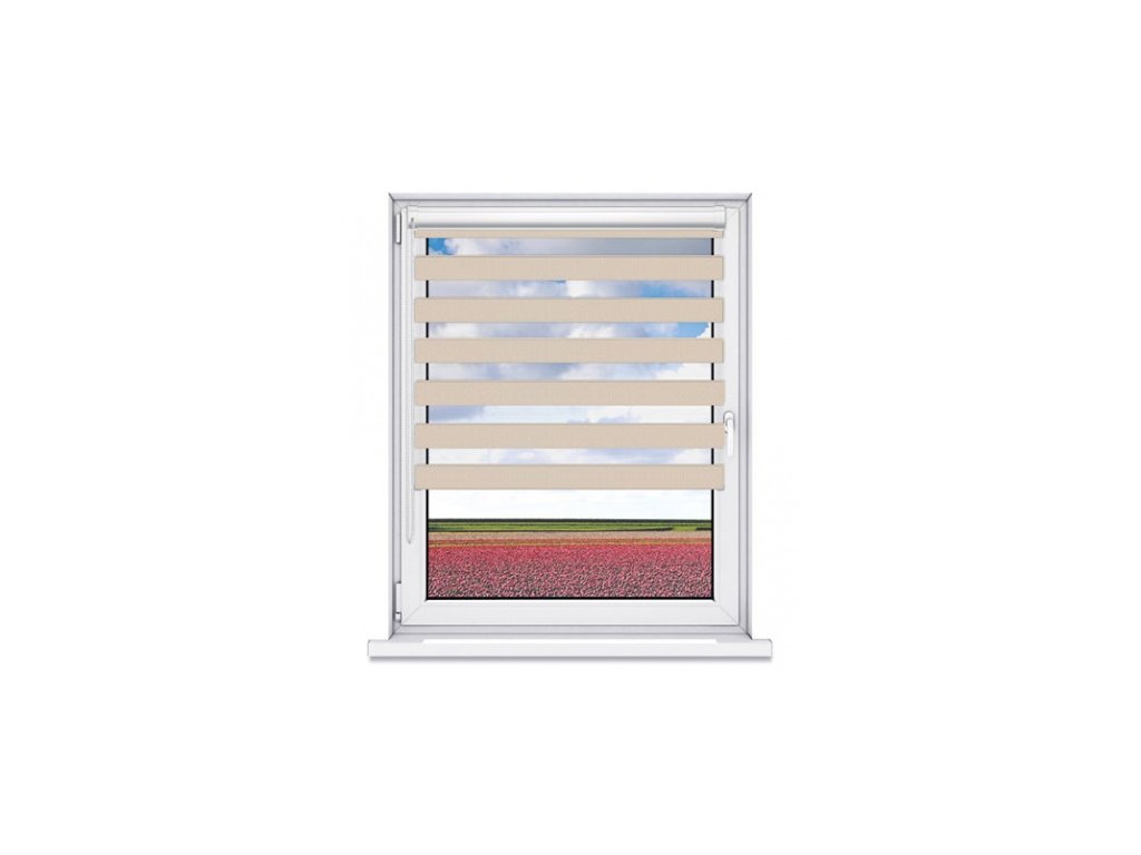 Princip rolety Den a Noc spočívá v kombinaci dvou rozdílných látek - tmavé (stínící) a průsvitné. Množství procházejícího světla do místnosti regulujeme správným nastavením pruhů na obou plochách tkaniny (světlá, tmavá).