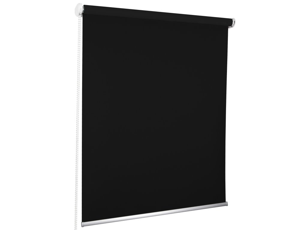 Roleta MAXI BLACKOUT v černém odstínu s 100 % zatemňující látkou. Montáž na stěnu, strop nebo do výklenku, ovládání zleva i zprava.