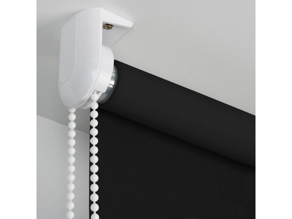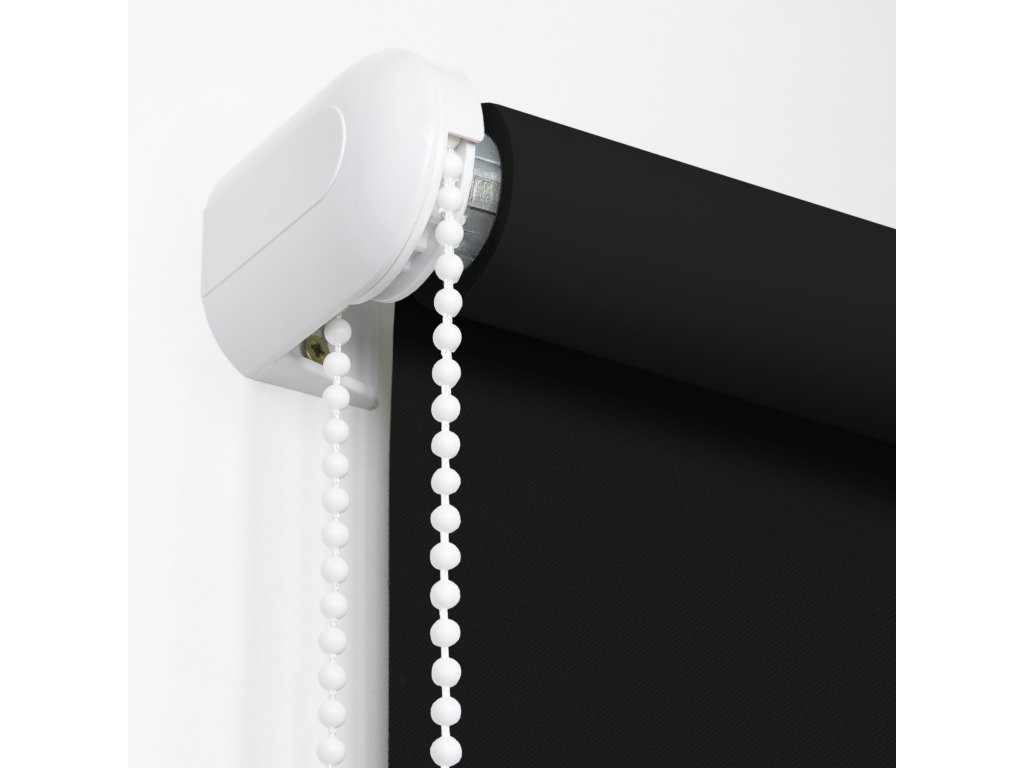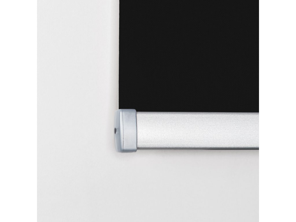 Roleta MAXI BLACKOUT v černém odstínu s 100 % zatemňující látkou. Montáž na stěnu, strop nebo do výklenku, ovládání zleva i zprava.