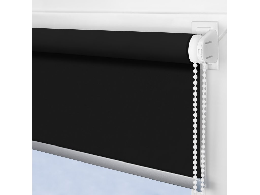 Roleta MIDI BLACKOUT – Černá – elegantní černé provedení s látkou pro 100 % zatemnění, montáž bez vrtání na rám či křídlo, ovládání libovolně vlevo či vpravo.