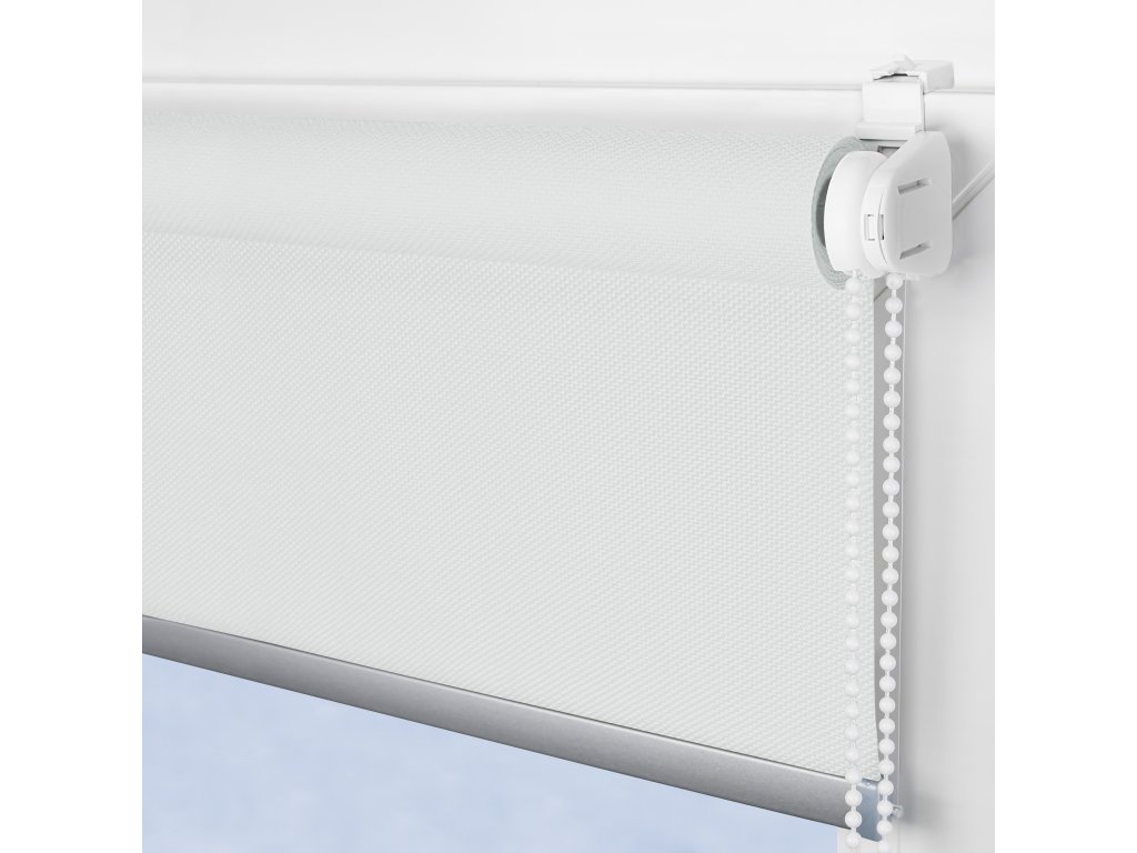 Roleta MIDI FUN v bílé barvě s jemnou strukturou látky. Zatemnění 100 %, montáž bez vrtání na rám či křídlo okna, ovládání z levé i pravé strany.