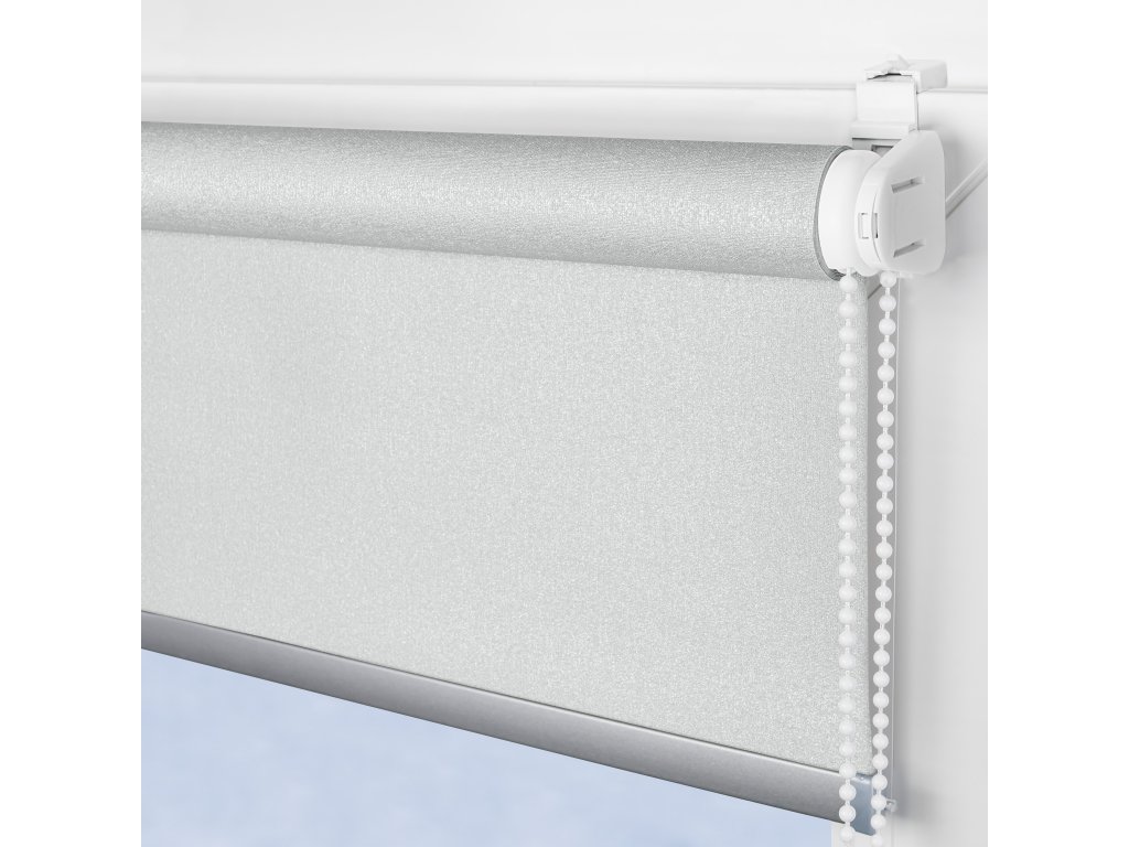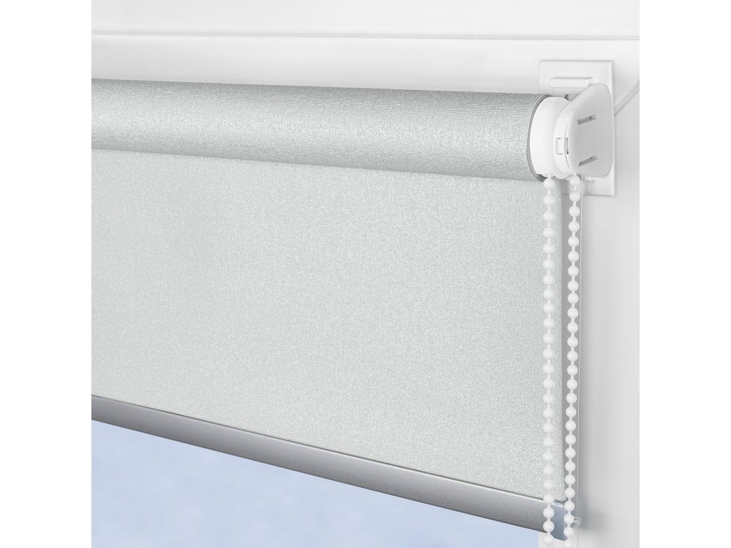 Roleta MIDI SHINE – stříbrná. Elegatní brokátově lesklá 100% polyesterová látka, 100 % zatemnění, montáž bez vrtání na rám či křídlo, ovládání řetízkem z obou stran.