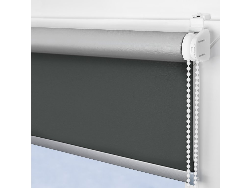 Roleta MIDI TERMO v šedém provedení s termoizolační látkou 100 % polyester (115-125 g/m²), zatemnění 100 %, montáž bez vrtání na rám nebo křídlo, oboustranné ovládání.