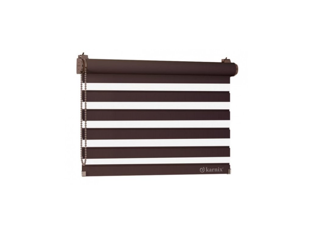 Systém rolet DEN A NOC je velice moderním způsobem jak regulovat stínění ve dne a zabezbečit pocit soukromí v noci. Princip tohoto systému je založen na dvou vrstvách látky kde se střídají průhledné a neprůhledné vodorovné motivy či pruhy. Navíjením jedné vrstvy látky dochází k regulaci průniku světla. Řetízkovým ovládáním si můžete navolit pruhy látky tak, aby jste v interiéru vytvořili světlo nebo tmu. Roletu můžete zastavit v libovolné výšce.
