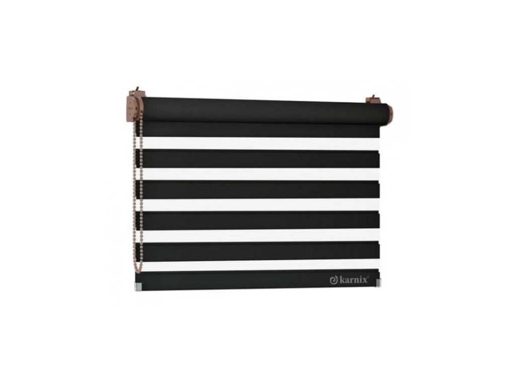 Systém rolet DEN A NOC je velice moderním způsobem jak regulovat stínění ve dne a zabezbečit pocit soukromí v noci. Princip tohoto systému je založen na dvou vrstvách látky kde se střídají průhledné a neprůhledné vodorovné motivy či pruhy. Navíjením jedné vrstvy látky dochází k regulaci průniku světla. Řetízkovým ovládáním si můžete navolit pruhy látky tak, aby jste v interiéru vytvořili světlo nebo tmu. Roletu můžete zastavit v libovolné výšce.