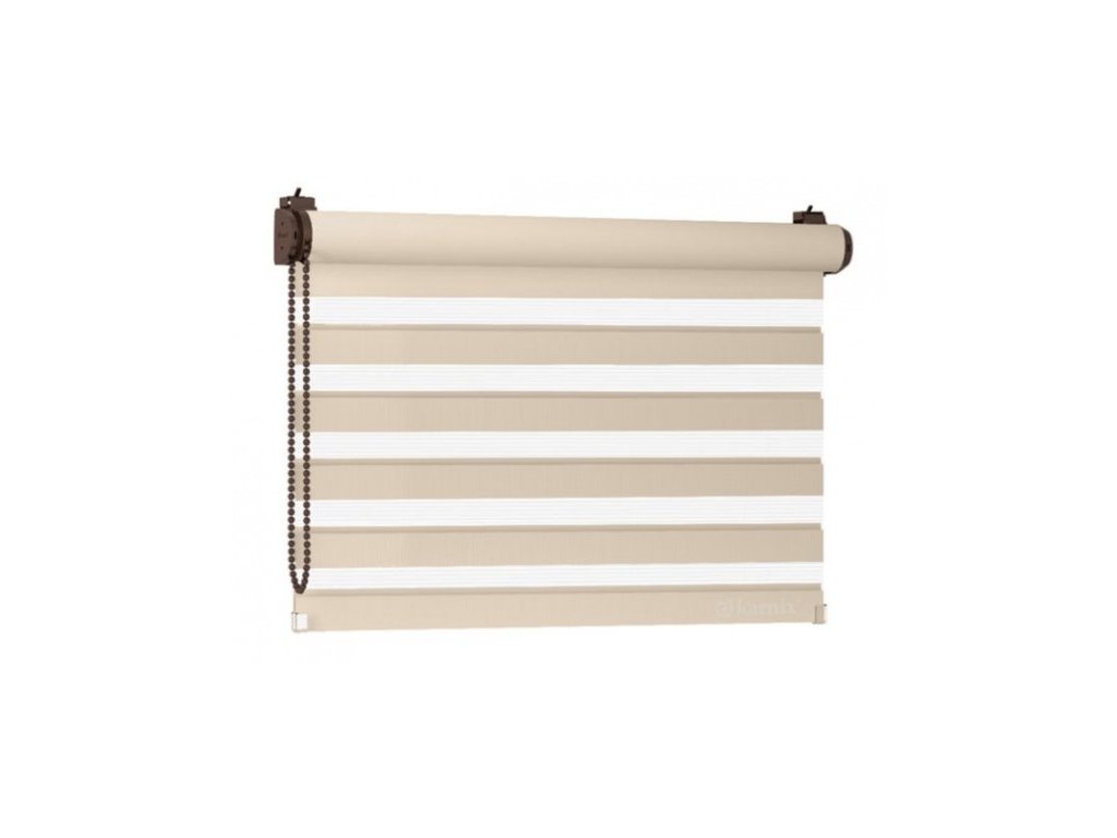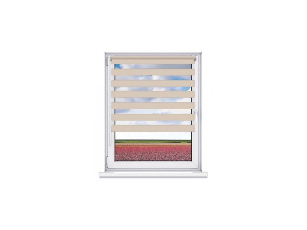 Systém rolet DEN A NOC je velice moderním způsobem jak regulovat stínění ve dne a zabezbečit pocit soukromí v noci. Princip tohoto systému je založen na dvou vrstvách látky kde se střídají průhledné a neprůhledné vodorovné motivy či pruhy. Navíjením jedné vrstvy látky dochází k regulaci průniku světla. Řetízkovým ovládáním si můžete navolit pruhy látky tak, aby jste v interiéru vytvořili světlo nebo tmu. Roletu můžete zastavit v libovolné výšce.